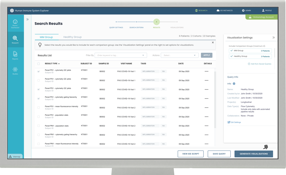 The product - HISE (Human Immune System Explorer) was conceived to aid Immunologists in uncovering solutions for disease prevention and treatment. My role? Figuring out how to establish a user experience that would align with scientific research trends and provide meaningful insights to scientists in the broader scientific community.