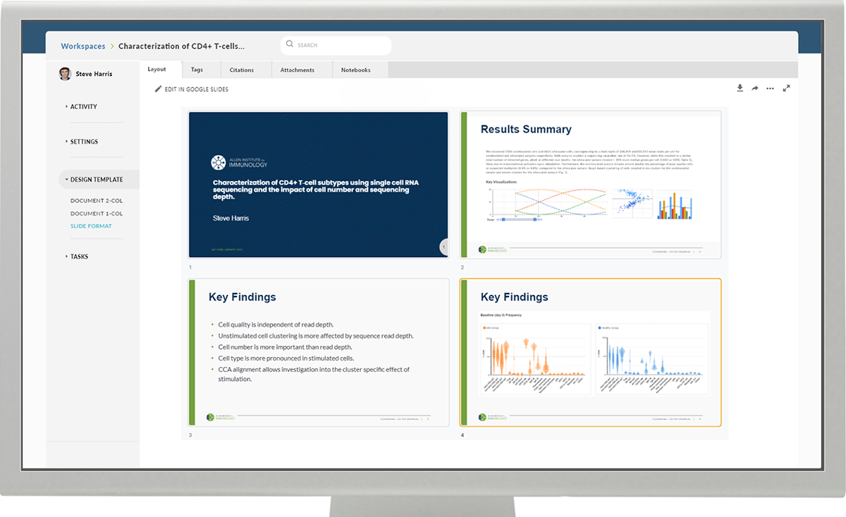 The concept of ‘Workspaces’ as seen below addressed these needs while also providing the tools and features necessary for publishing study findings to the greater scientific community.