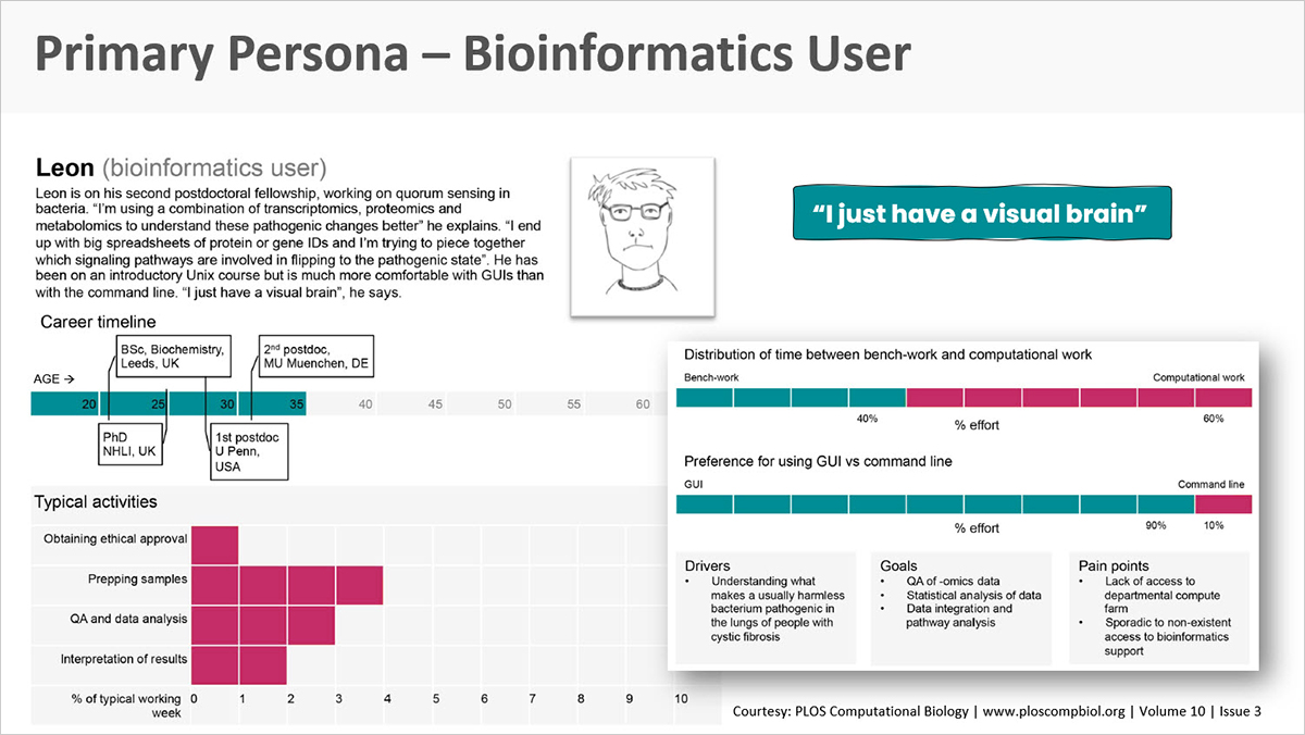Two primary user personas were identified that effectively represented the more tech savvy scientist that the product initially addressed, and those research scientists representing the broader scientific community being targeted.