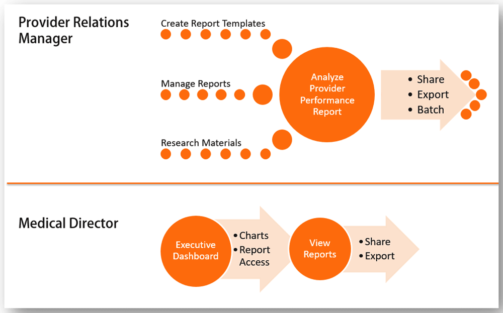 Knowing the true primary user was the Provider Relations Manager, we honed-in on their objectives vs those of the medical Director after hand-off.
